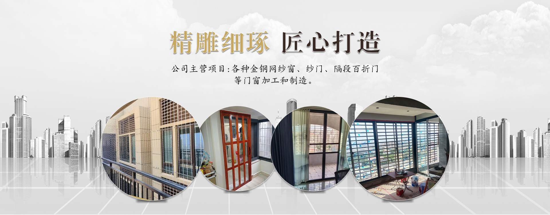 主营各种金钢网纱窗、纱门 、隔段百折门等门窗加工和制造。